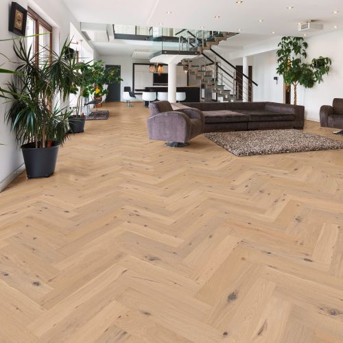 Ein Klassiker kehrt zurück! Modernes Fischgrät Parkett überzeugt durch großzügige Formate und attraktive Oberflächen.