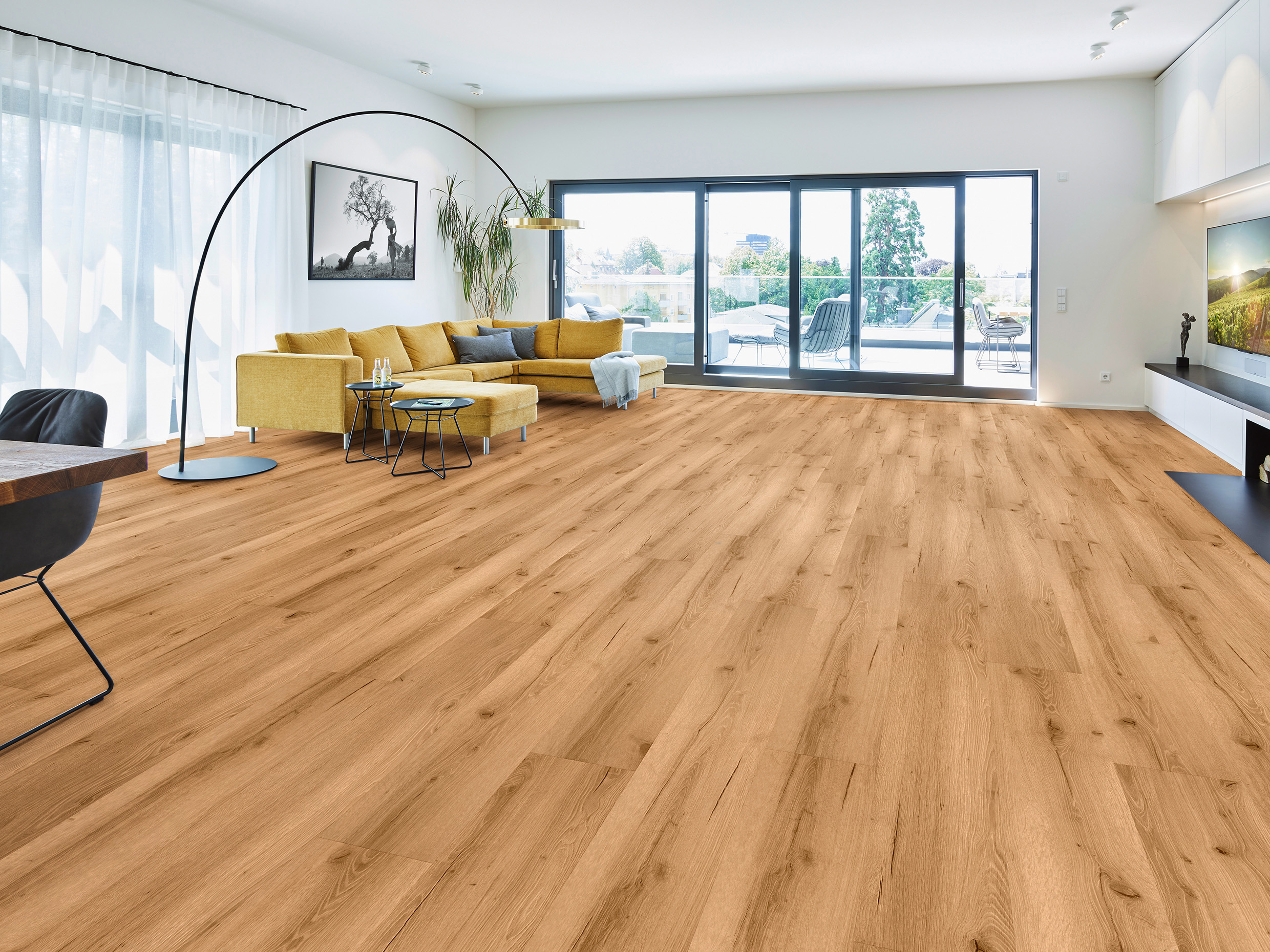 Bei Holz- & Steinnachbildungen bzw. bei LVT-Designböden sind leichte Farb- & Glanzgradunterschiede produktionsbedingt möglich. Dieses Vinyl-Dekor wird in allen erhältlichen Produkt- und Format-Typen mit derselben Oberflächenstruktur und demselben Finish bzw. Glanzgrad produziert.