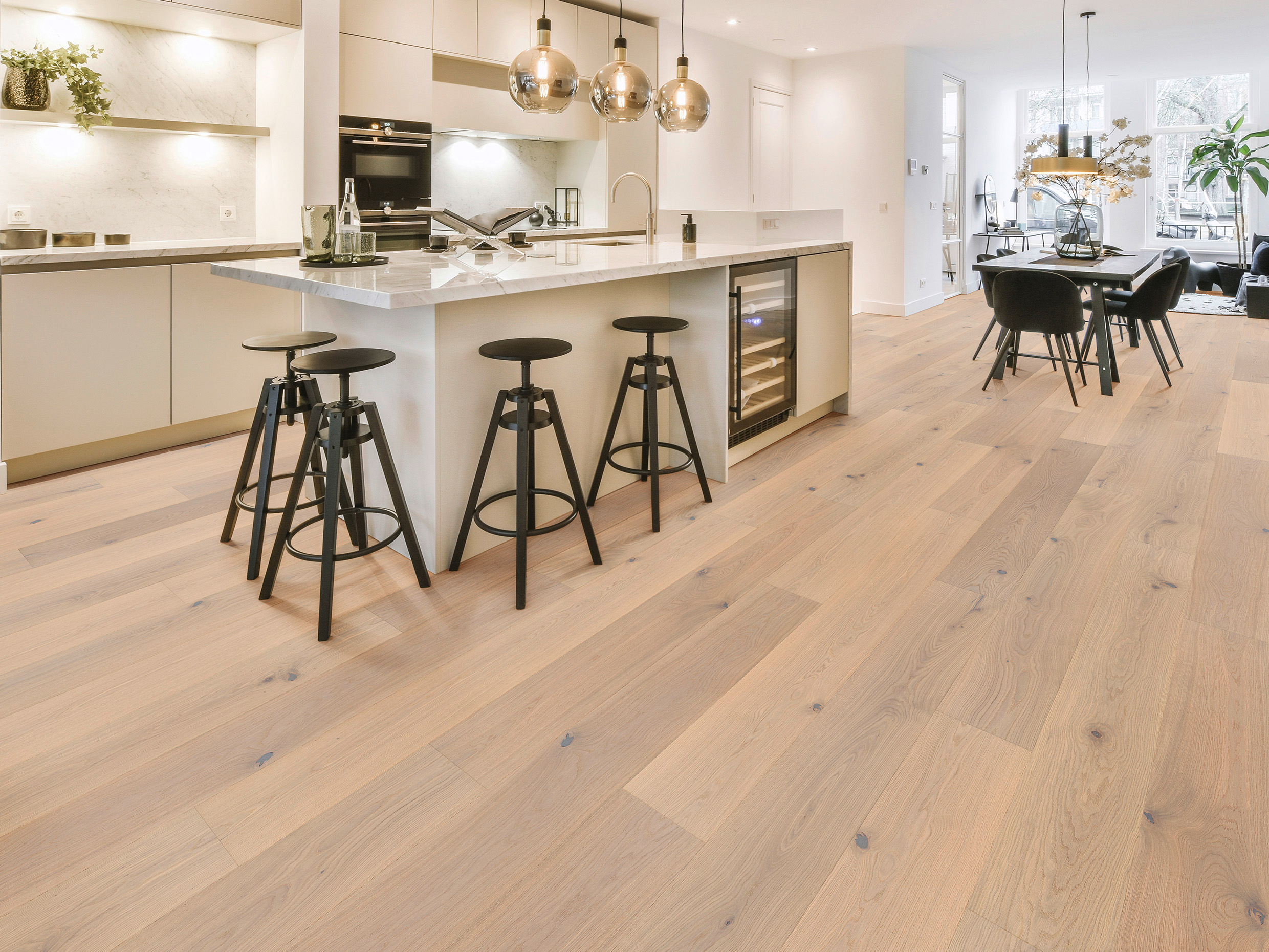 Wir weisen ausdrücklich darauf hin, dass enthaltene Halb- bzw. Teillängen-Anteile bei Dielenformaten branchenüblich und im "wilden Verband" einwandfrei zu verlegen sind. Details dazu finden Sie auch in unseren Angeboten & Auftragsbestätigungen. Holz ist ein Naturprodukt & jede Diele ein einzigartiges Unikat. Lebhaftigkeit & Farbspektrum eines Naturholzbodens sind abhängig von der jeweiligen Kombination aus Holzart, Sortierung, Struktur & Oberflächenbehandlung. Naturholzböden zeichnen sich grundsätzlich durch ein breites Farb- & Strukturspektrum aus. Es liegt in der Natur der Sache, dass Muster & Fotos nur einen Auszug aus dem natürlichen Farb- & Strukturspektrum des gewählten Naturholzbodens darstellen können. Zudem verändern sich Muster im Laufe der Zeit ebenso wie verlegte Holzböden. Im Regelfall werden helle Hölzer durch Lichteinfluss dunkler & dunkle Hölzer heller. Drucktechnisch oder durch Bildschirmeinstellungen bedingte Abweichungen der dargestellten Produkte im Grundfarbton & im Farbspektrum sind unvermeidlich, daher können Produktfotos auch keine Originalmuster ersetzen. Natürliche Abweichungen zwischen Mustern, Fotos & gelieferter Ware stellen keinen Grund zur Beanstandung dar. Wir empfehlen ausdrücklich, unsere Produktbeschreibungen sowie die Beschreibungen der Produktparameter zu beachten.